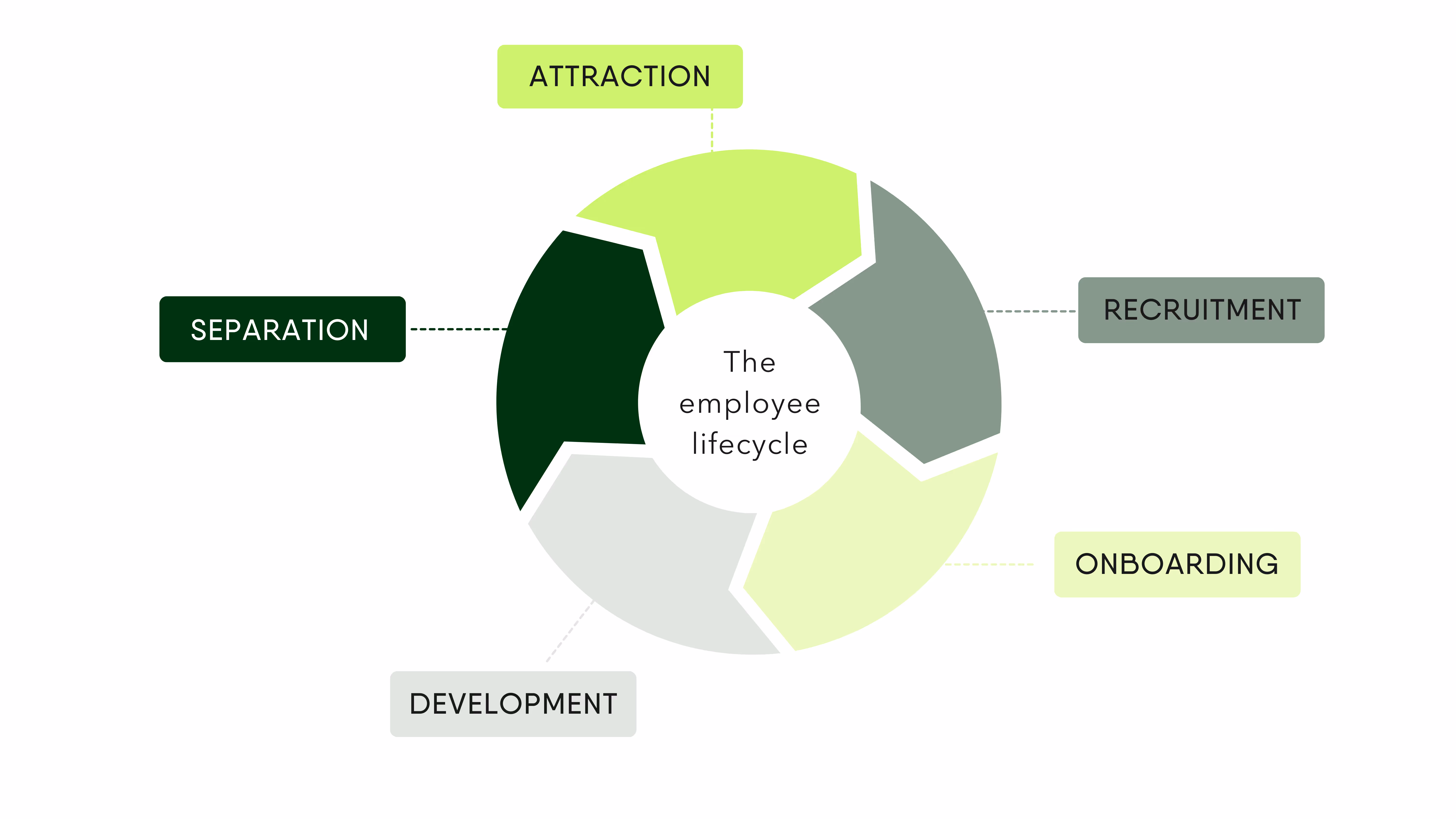 We can break the employee lifecycle down into five key stages. These are: